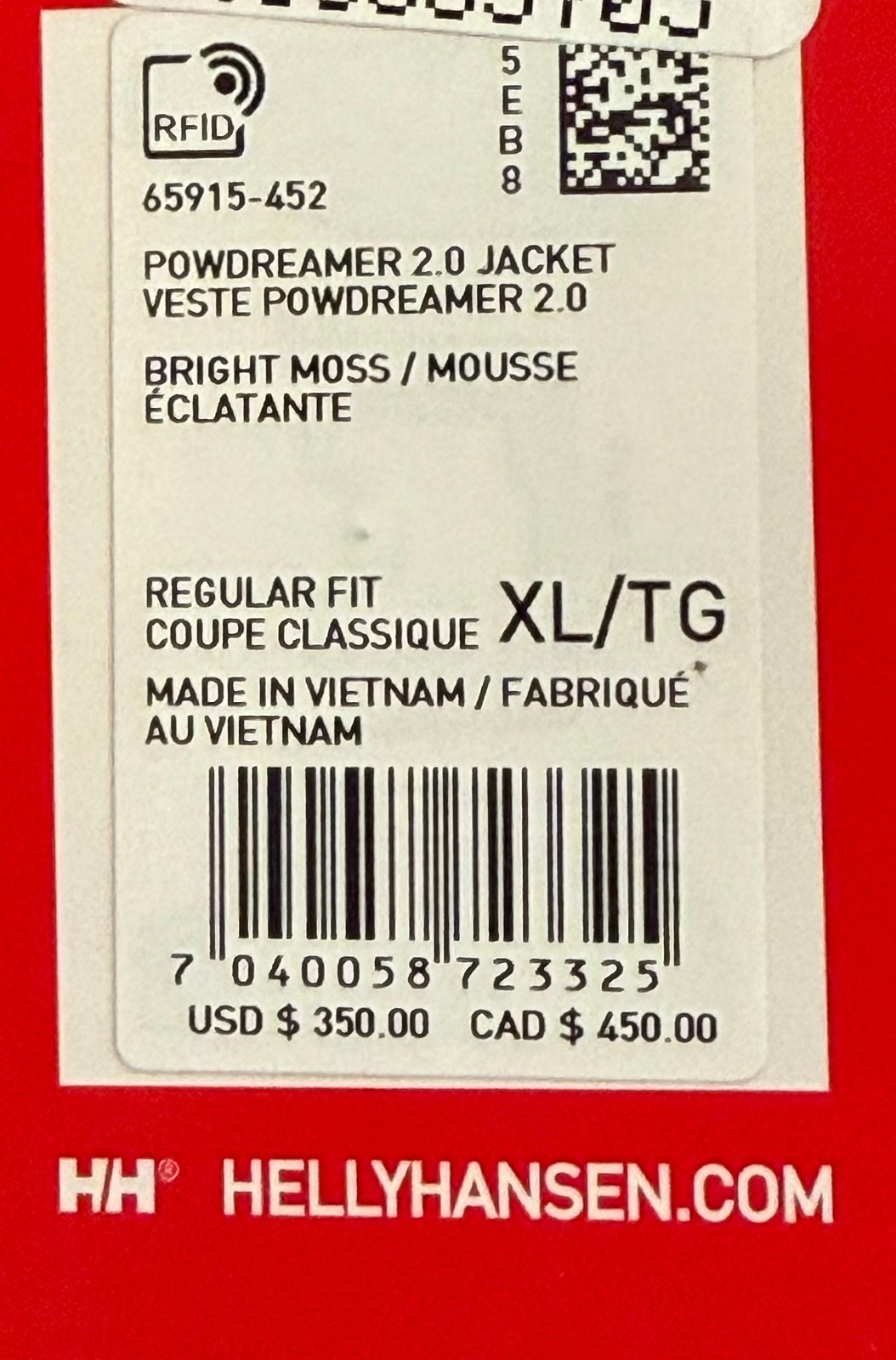 Helly Hansen Powdreamer 2.0 Men's Winter Jacket Bright Moss X-Large XL New w/tag